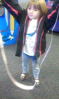 The informosion above occurred as we were about to leave her daycare. I spouted a cheer to be loud (Q and I will often have contests to see who can be the loudest). The spelling, the high volume, the day’s lessons and the musical nature of the cheer came together and “informoded” in her mind, causing her to utter an incomprehensible mish-mash of everything on her mind.