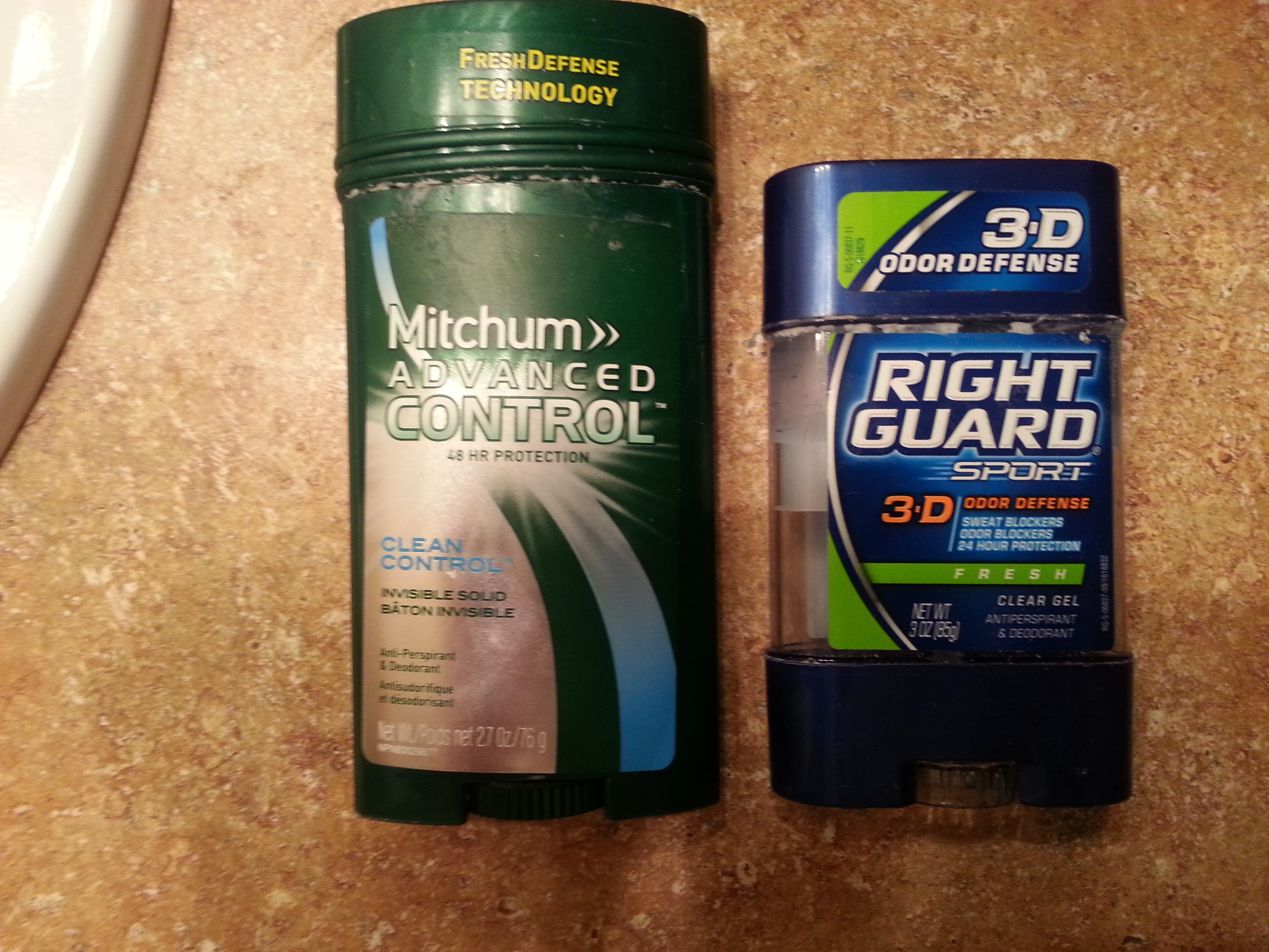 The stick on the left is more technologically advanced because of the “Fresh Defense Technology”. When I think of technology, I think of the wheel and computers and phones and blinking indicator lights, not scented goop that I smear on my armpits. I suppose the marketing guys thought more people will buy their deodorant if they clearly labeled how technologically advanced it is. The following monologue might play out in a discerning consumer’s head – Maybe I should get Speed Stick. *Reaches for Speed Stick* Wait! I’ll be stinking in a matter of minutes with its outdated stink fighting technology! *Quickly pulls hand away* If only there was a stick with the technology to defend my freshness. *Eyes zero in on Mitchum Professional Strength* BINGO! What a relief! Later, another savvy consumer goes looking for deodorant. I wish girls couldn’t smell in the third dimension, most deodorants nowadays only eliminate odors in two dimensions. You’d think that one of these companies would capitalize on the fact that no other brand offers odor defense in all three dimensions. *Eyes widen, throat squeals with delight* Holy sh*t! Right Guard answered my prayers! No more “I’ll go out with you when your third dimension doesn’t smell like bug guts sandwiched between sadness.” I should mention that the only “technology” mentioned on most anti-perspirant/deodorant is focused on the deodorant. It seems that anti-perspirant “technology” has plateaued. I will now close the gate on the garbage truck that is my thoughts. Hopefully, you have the technology to defend against the smell 🙂 FIN @JarrettLWilson