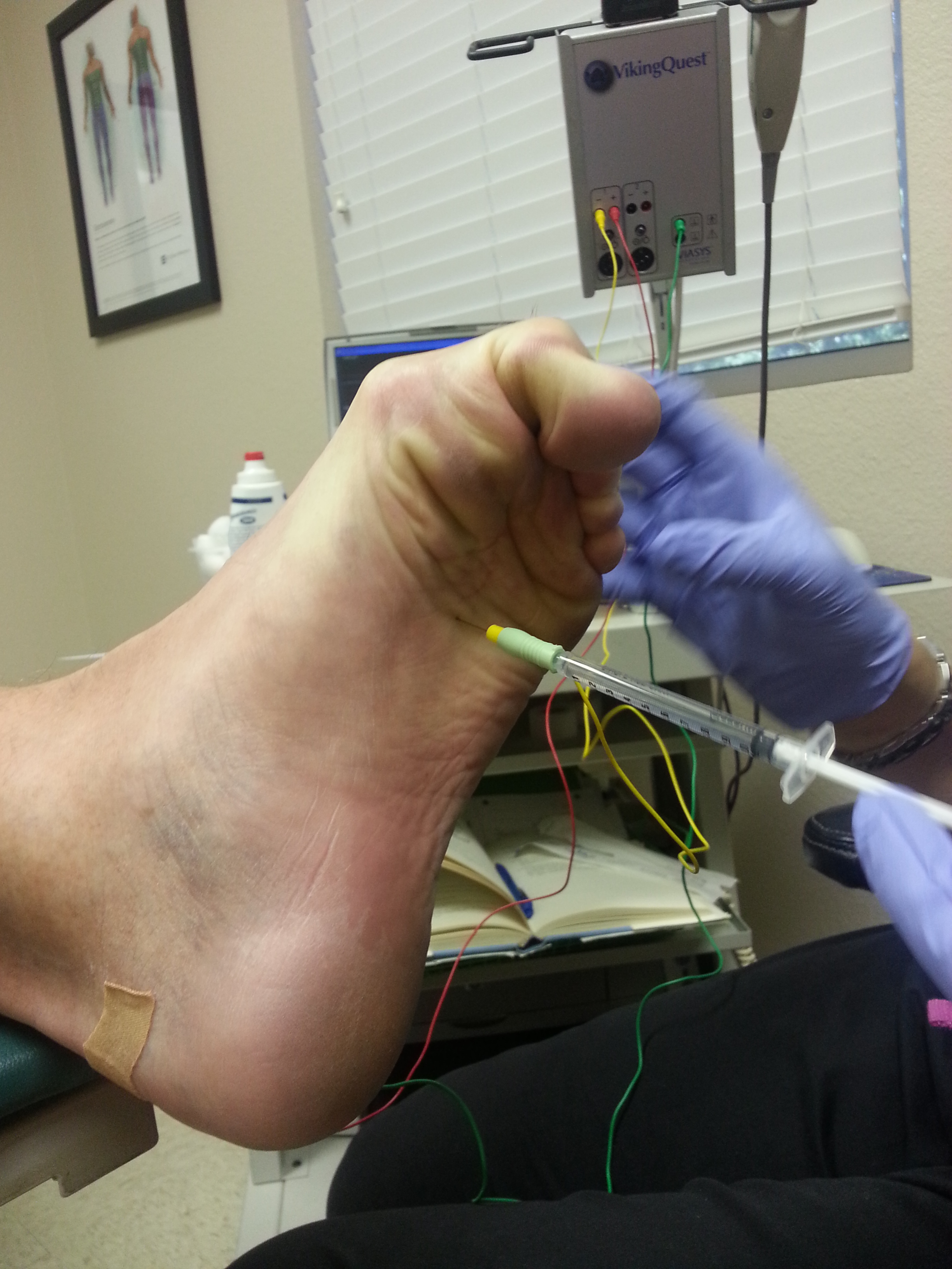 Notice that the bottom of my foot STILL has a needle in it