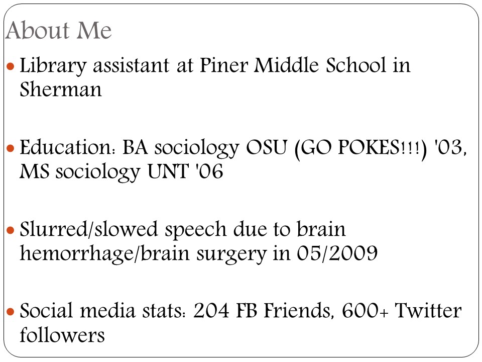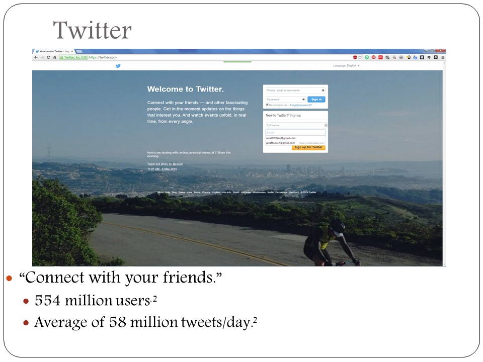 October 8, 2014 Topic not about Brain Injury / Uncategorized Social Media Presentation Posted by jERT I prepared the following presentation on PowerPoint to summarize social media as of 10/2014 – Share this: Click to share on X (Opens in new window) X Click to share on Facebook (Opens in new window) Facebook Like Loading... Related